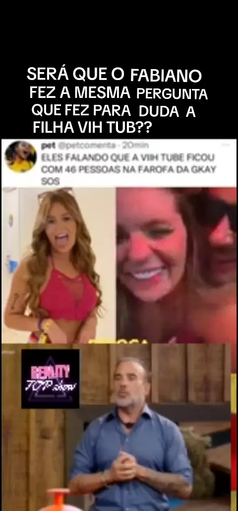 SERÁ QUE O FABIANO FEZ A MESMA PERGUNTA QUE FEZ A DUDA, SERA QUE COMPAROU A FILHA VIH TUB A UMA PIZZA BROTINHO, QUANDO PEGOU 46 HOMENS DIFERENTES E FOI A RAINHA DA FAROFA?? SEGUE AQUI A PÁGINA REALITY TOP SHOW CURTE COMENTE E COMPARTILHE PARA FICAR POR DENTRO DE TUDO QUE ESTÁ ACONTECENDO