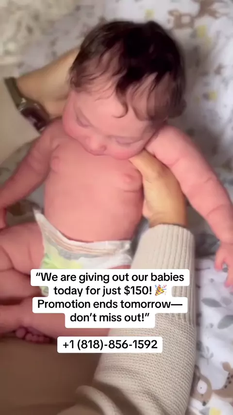 “We are giving out our babies today for just $150! 🎉 Promotion ends tomorrow—don’t miss out Message me on this phone +1 (818)-856-1592 #rebornbabydoll #reborncollector #fullsiliconebaby #rebornsforsale #fakebaby More