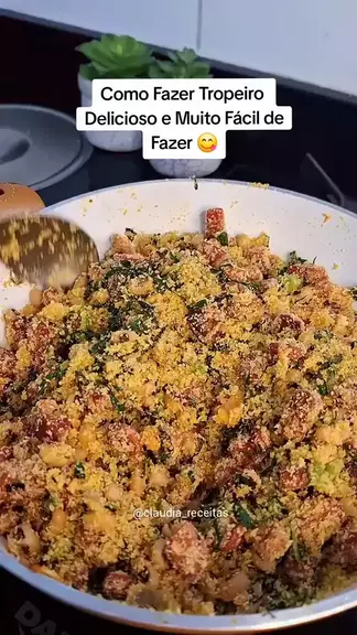 Como fazer feijão tropeiro delicioso bem Temperadinho 😋 Marque alguém pra fazer 👏 #feijão #feijãotropeiro #receita #comida @claudia_receitas 300g de feijão( usei o feijão fradinho) 300g de farinha de mandioca 1 gomo de linguiça calabresa 100g de Bacon 1 folha de couve Alho Cebola Chimichurri Coloral Margarina Óleo ou azeite Tempero completo