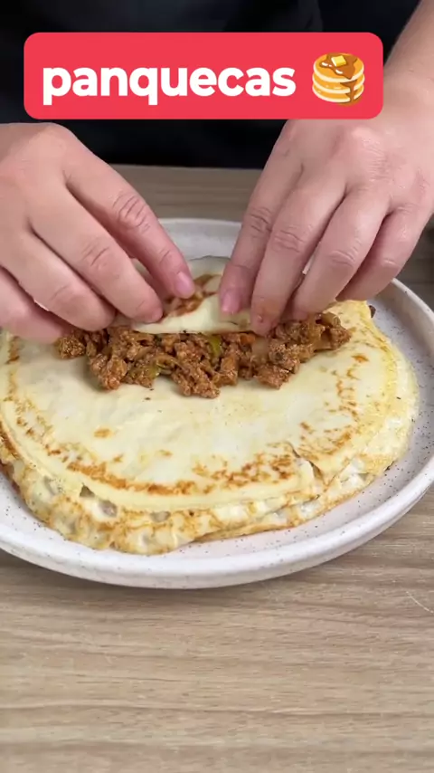 Essa é a melhor receita de panqueca que você já viu! INGREDIENTES: - 1 cebola - 2 dentes de alho - 1 tomate - 1 pimentão verde - 500g de carne moída - 1 colher de chá de sal - 1/2 colher de chá de pimenta-do-reino - 1 colher de chá de páprica - 3 colheres de sopa de extrato de tomate - 200ml de água - Cheiro-verde a gosto - 2 ovos - 1/2 xícara de óleo - 1/2 colher de chá de sal - 400ml de leite - 1 xícara de farinha de trigo - 2 colheres de sopa de manteiga - 3 colheres de so