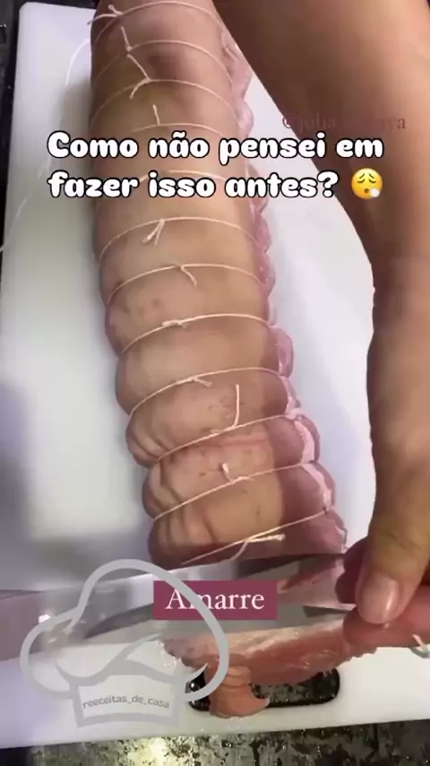 PANCETA SUPER DELICIOSA 😋 Dê dois toques na tela se você gostou da receita! ❤️ INGREDIENTES: - 1,8kg de panceta - 1 1/2 colher (sopa) de sal MODO DE PREPARO: - Salpique sal sobre a panceta (apenas do lado da carne). - Enrole e amarre com um barbante. - Acenda o forno e pré-aqueça a 250 graus por 15 minutos. - Em seguida, diminua a temperatura para 180 graus, coloque a panceta no forno e asse por 1h30 ou até o couro ficar sequinho. - Desligue o forno e deixe esfriar. - Após, retire a panc