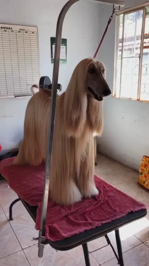 Trimming em cadela da raça Afghan Hound.