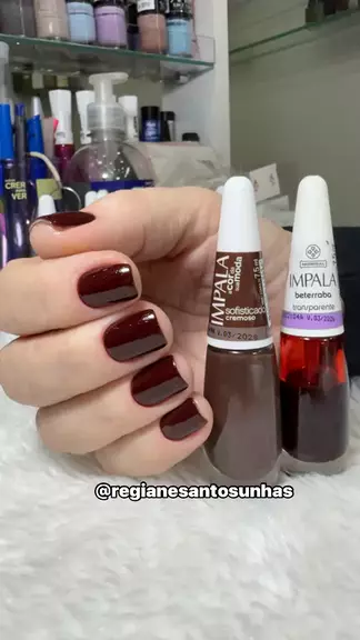 Misturinha com esmaltes escuros da Impala . Passei 2 camadas do marrom cor SOFISTICADO e por cima uma camada do BETERRABA. Sempre, sempre, sempre eu finalizo as minhas esmaltações com um extra brilho. * * * #gagacabana #bobbiegoods #manicure #unhasnaturais