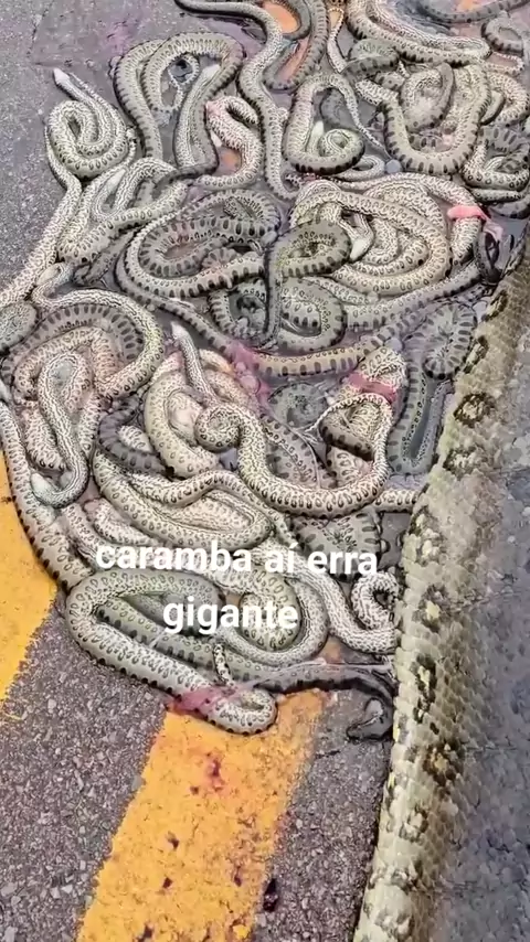 foi encontrada em rodovia essa cobra gigante cheia de filhotes