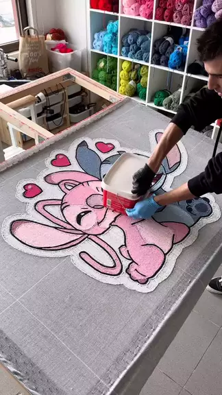 Handcrafted Lilo & Stitch Tufting Rug: A Unique Artist's Masterpiece! | by myblacin #EfekGreenScreen #snacktalent #Art