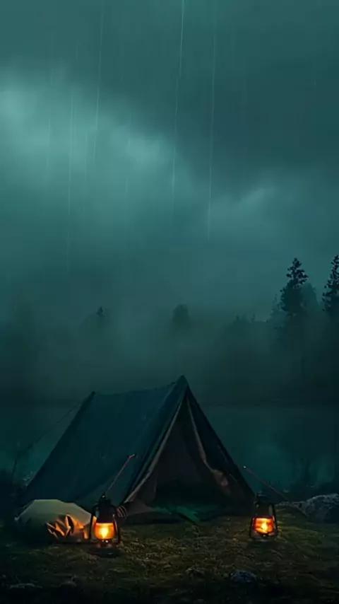 : 🌧️ Acampar na chuva tem um charme todo especial... O som das gotas caindo no tecido da tenda, a brisa fria e o cheiro da terra molhada. 🌲🏕️ Nada como se reconectar com a natureza e encontrar paz nas pequenas coisas. Quem mais adora esse clima? #Chuva #Camping #Natureza