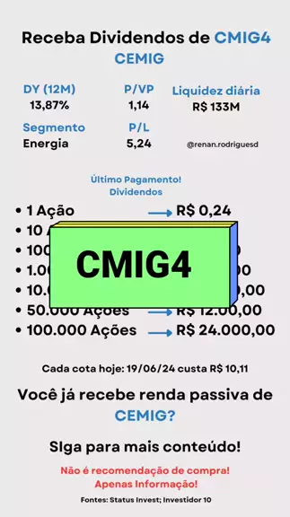 Aqui uma comparação das ações da CMIG4 uma empresa do setor de energia. Se quiser aprender mais sobre como investir na bolsa siga para mais conteúdo 💙 Não é recomendação de compra! Fonte: status invest e Investidor10 #baoprakwai #educação #financas #Investimentos #ações