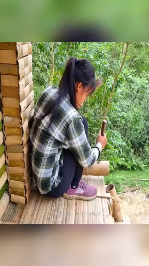 Bambu faz um corredor, poser decorado com uma casa confortável # casa de bambu construída