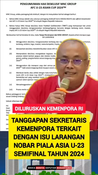 TANGGAPAN SEKRETARIS KEMENPORA TERKAIT DENGAN ISU LARANGAN NOBAR PIALA ASIA U-23 SEMIFINAL TAHUN 2024 #mnc #kemenpora #pssi #u23 #pialaasia