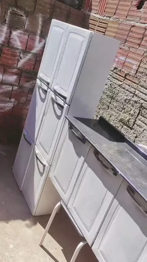 Antes e depois pintura do armário em casa com rolinho 💥 Não ficou 100% porém melhor do que tava 🤌🏻