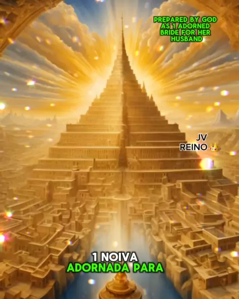 Nova Jerusalém como uma cidade celestial majestosa, resplandecente, descendo dos céus em meio a uma luz divina.