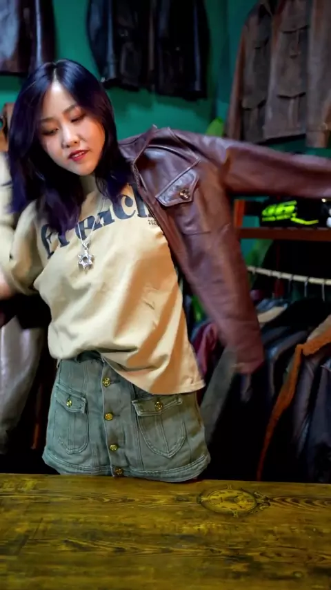Tambahkan beberapa warna dalam hidup Anda-retro membuat jaket kulit pendek pria kulit merah dan coklat tua tanpa lapisan ~ # Kulit asli # Jaket kulit asli pria