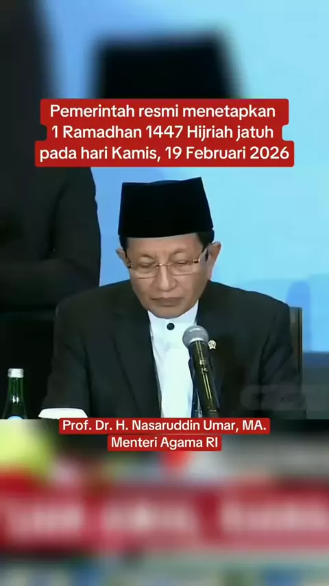 Pemerintah resmi menetapkan 1 Ramadhan 1447 Hijriah jatuh pada Kamis, 19 Februari 2026, Selasa (17/2) || Prof. Dr. H. Nasaruddin Umar, MA. #penetapan1ramadhan #awalramadhan #ramadhan2026 #19februari2026 #menteriagama