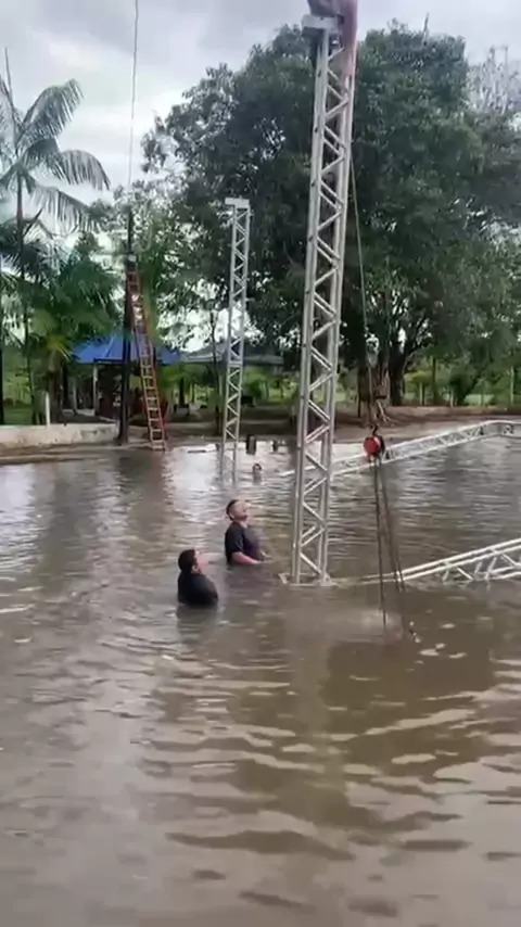 Palco no meio da água, você montaria? Responde aí na nossa enquete 👇 #audionaestrada #som #sonorização #audio #backstage #eventos #sound #dj #sonido #soundsystem #someluz