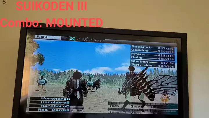 Combinação: Mounted Integrantes: Shabon, Sgt. Joe Descrição: Causa dano a todos numa área, Sgt. Joe fica desequilibrado. #suikoden3 #ps2