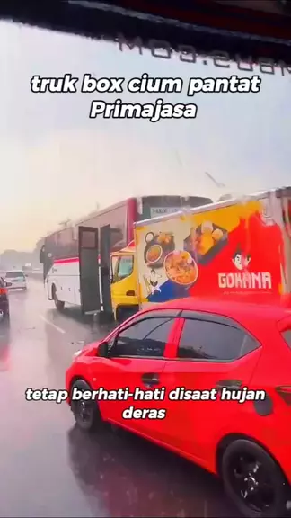 Truk box cium pantat bus Primajasa akibat jalan licin hujan deras #primajasa #busprimajasa #bus #truk #trukbox