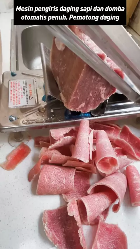 Mesin pengiris daging sapi dan domba otomatis penuh. Pemotong daging