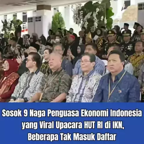 Sosok 9 Naga Penguasa Ekonomi Indonesia yang Viral Upacara HUT RI di IKN, Beberapa Tak Masuk Daftar. Inilah sosok 9 Naga yang kerap disebut penguasa ekonomi Indonsia viral saat terlihat hadir pada upacara HUR RI di IKN. Ternyata, dari sosok pengusaha itu yang hadir itu, ada beberapa nama tak masuk dalam daftar 9 Naga Penguasa Ekonomi Indonesia yang banyak beredar di internet. #viral #sembilannaga #investor #IKN #upacarabendera #17agustus #pengusaha #ekonomi #hutri79 # #rmolsumsel