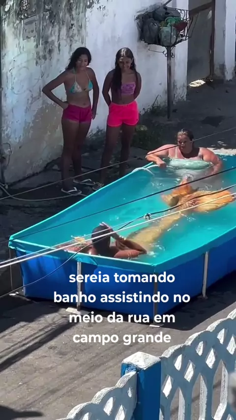 #sereiadecampogrande você vai visitar sua família em campo grande encontro uma sereia tomando banho de piscina no meio da rua