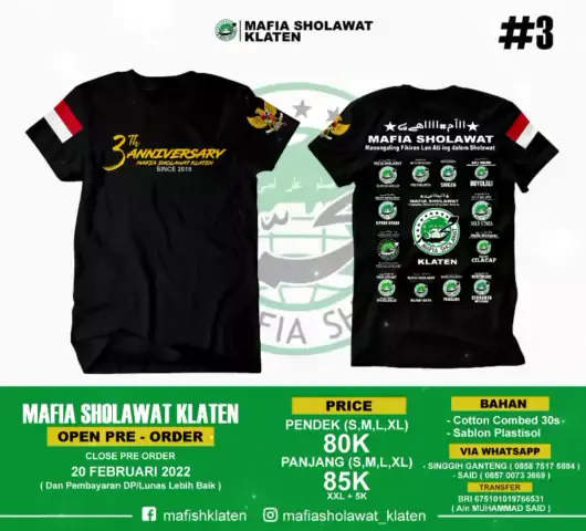 بِسْمِ اللَّهِ الرَّحْمَنِ الرَّحِيم monggoLimited Edition Kaos Anniversary 3 Tahun Mafia Sholawat Klaten #mafiasholawatklaten #mafiasholawatindonesia