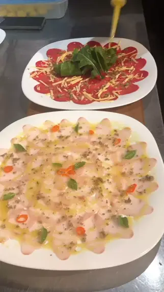 Carpaccio de carne e carpaccio de peixe #comida #fy #amocomer #camarão #CulinariaItaliana
