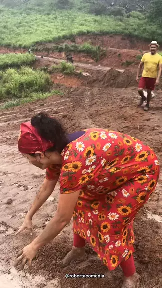 A comadre brincando na chuva