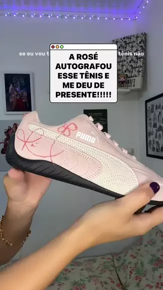 A ROSÉ AUTOGRAFOU ESSE TÊNIS E ME DEU DE PRESENTE!!!!!!! 😭💖 meu primeiro speedcat! ele é lindo demais e EU TÔ TÃO FELIZ! TE AMO PUMA!!!! #rosé #blackpink #blinks #puma #speedcat