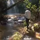 assando carne na floresta