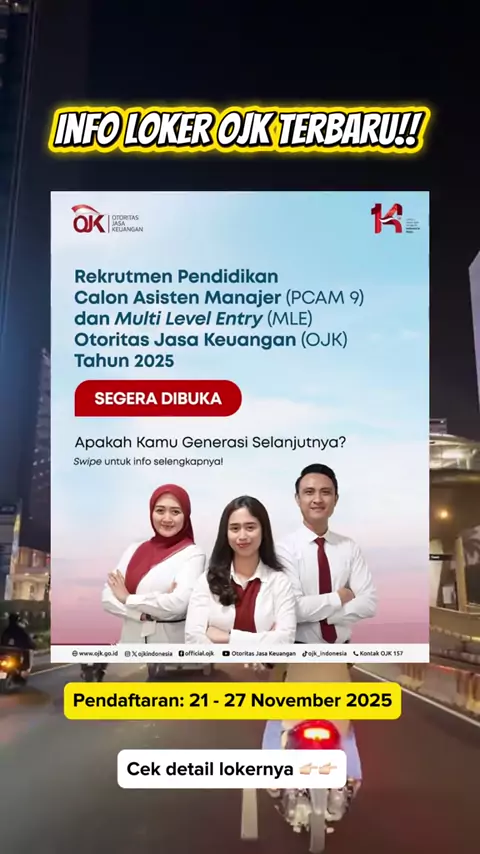 Pendaftaran dibuka: 21-27 November 2025 π Daftar di: ojk-pcam9mle.shl.co.id β οΈ Rekrutmen gratis, waspada penipuan mengatasnamakan OJK. save dan share video ini biar temen kamu gak kelewatan buat daftar ya#ojk#pcam9#tipskerja#infoloker#freshgraduate