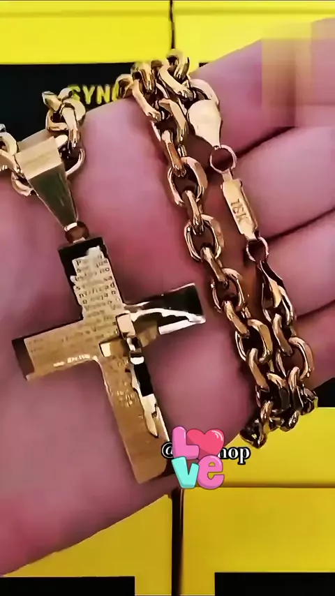 Corrente cordão masculino aço inox banhado a ouro 18K Cruz 3D #FamiliaaTopMil #RobsonAdai #Ecomercee #KwaiVendas