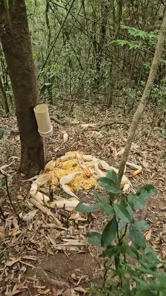 dicas de céva de paca . paca so rodeia a céva . pelo comido não conseguimos identificar se é paca . #trilhas #sevadepaca #floresta #caçador