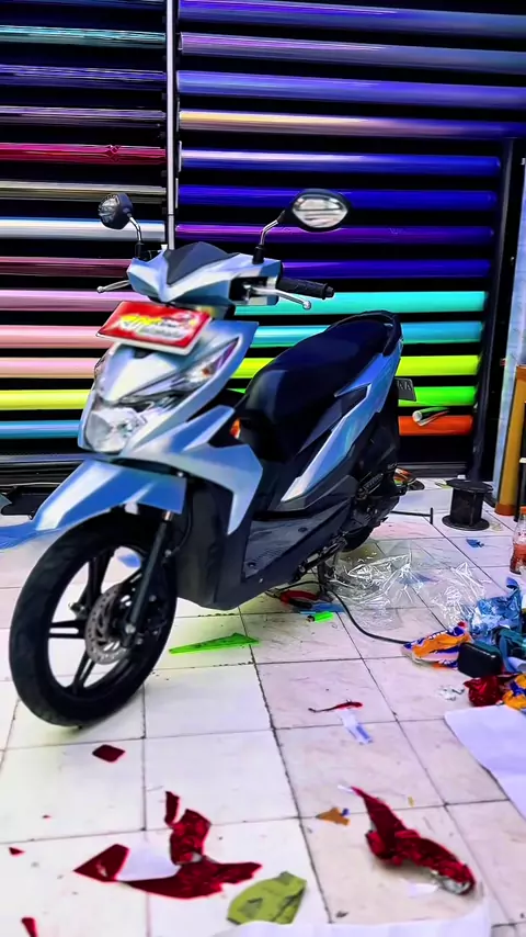 Wrapping sticker blue white gold beat #hondabeat #stikermotor #wrappingsticker #beranda ゚viral #terdekat