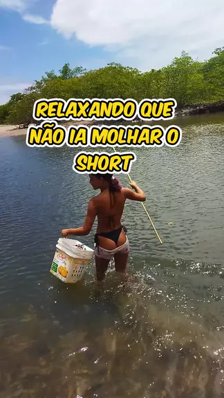 ela achando que não ia molhar o short