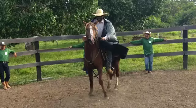 Meu esposo domador de equinos muar e Bardoto, tirando a colocando capa de chuva nesse cavalo com 5 dias que estava trabalhando com esse animal
