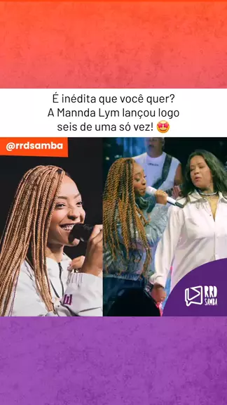 A @manndalym lançou seis inéditas: "Apesar de tudo", "Amor ou ressentimento", "Não vou me anular", "Nossa trama", "Chave" e "Dublê de Fama". Que músicas e que voz, né? 💜👏 #rrdsamba #manndalym #samba #pagode