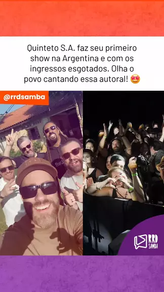 O @quintetosa levando nosso pagode pra Argentina. Legal demais, né? 💜👏 #rrdsamba #quintetosa #samba #argentina #pagode