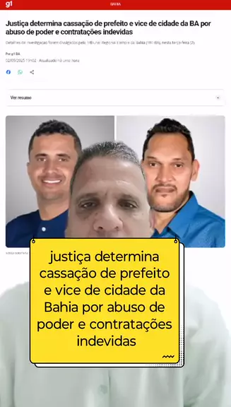 #noticias justiça determina cassação de prefeito e vice-prefeito de cidade da Bahia por abuso de poder e por contratações indevidas