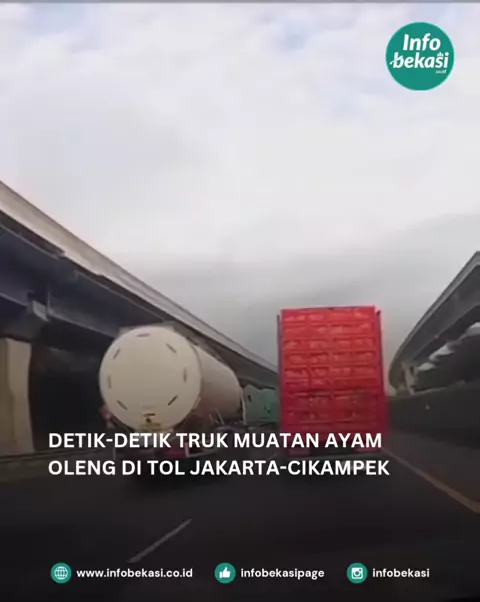 Kamera DC dari @cantikapni merekam detik-detik mobil truk muatan ayam oleng karena nyaris senggolan dengan truk di sampingnya. Kejadian di Tol Jakarta-Cikampek KM 40. #infobekasi