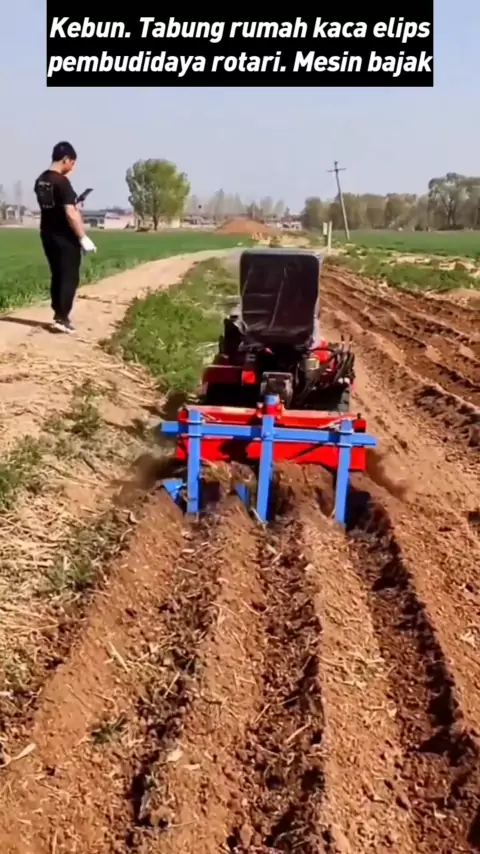 Kebun. Tabung rumah kaca elips pembudidaya rotari. Mesin bajak