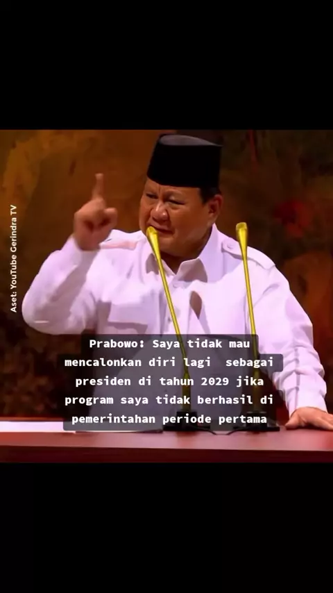 Presiden prabowo ungkapkan jika dirinya tidak akan maju lagi di pemilihan presiden 2029 jika program program nya tak berhasil di pemerintahan periode pertama! Hal itu di sampaikan saat memberikan sambutan di acara Hut ke 17 partai gerindra pada hari sabtu (14/02/25) #prabowosubianto #partaigerindra #hut17gerindra