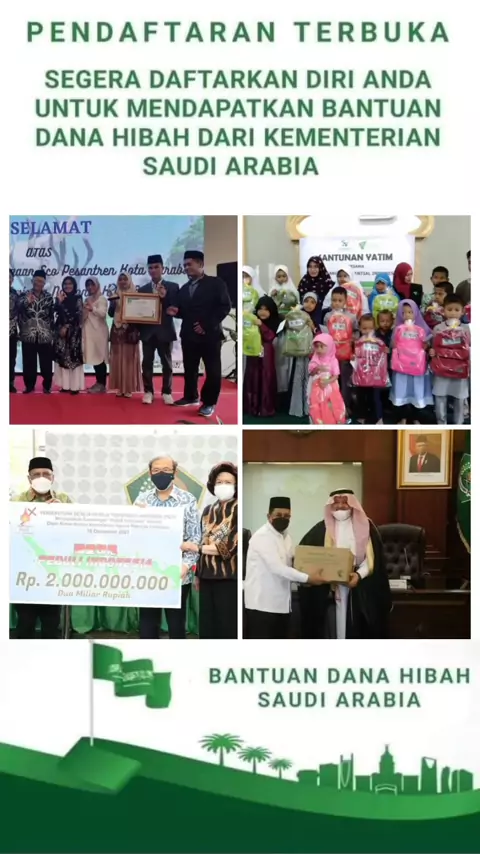 بِسْمِ اللهِ الرَّحْمٰنِ الرَّحِيْمِ Kabar gembira untuk seluruh masyarakat! Kini telah dibuka program bantuan dana hibah resmi dari Arab Saudi, sebuah kesempatan besar bagi siapa pun yang membutuhkan dukungan dana untuk usaha, pendidikan, sosial, hingga kebutuhan keluarga. #DanaHibahArabSaudi #ProgramHibahResmi #BantuanInternasional #InfoBantuanTerbaru #HibahUntukMasyarakat