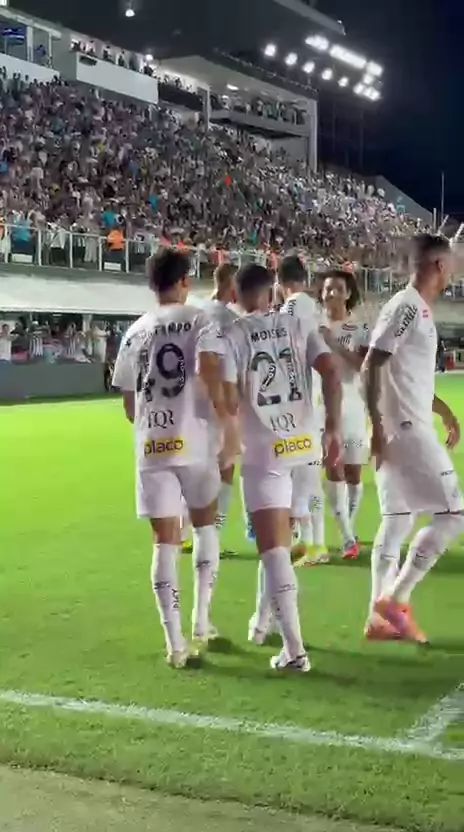 Assistência com precisão e cabeceio perfeito! O primeiro gol do Moisés com o #MantoSagrado! 🤝 #Santos #SantosFC