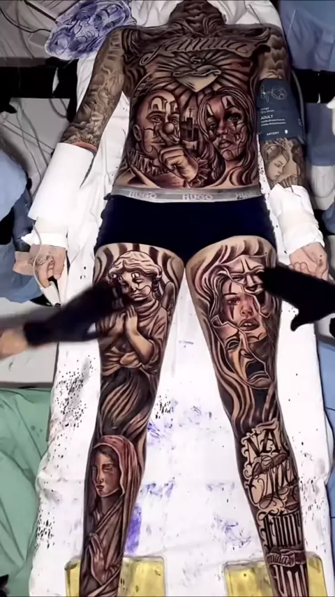 Preto e cinza realista estilo chicano anestesia de corpo inteiro sessão de tatuagem processo de tatuagem tatuador - Zoio.Realismo # tattooartist # fullbodytattoo # anestesiatattoo # anestesia # chicanotattoo # tattooideas # tattoosformen # worldsbesttattoos # besttattoos # tatuaje # tatuador # tattooideasformen # tattooprocess # tattootechniqueprocess # tattooculture