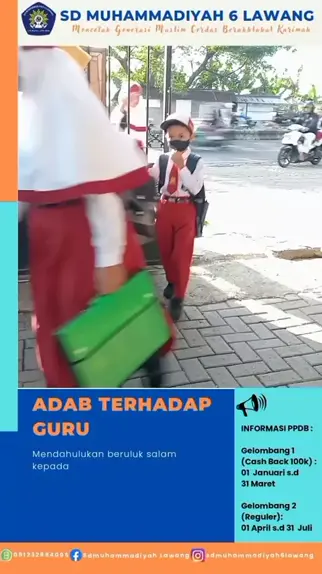Adab Terhadap Guru diterapkan dalam Pembiasaan Karakter Islamis di setiap pagi siswa mendahulukan uluk salam terhadap guru yang bertugas di depan gerbang SD Muhammadiyah 6 Lawang, sehingga siswa langsung menerapkan akhlakul karimah kepada guru di sekolah #karakterislam #sdmuhammadiyah6lawang #sdislam #sdhits #sdberkemajuan