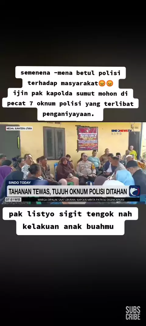 tahanan tewas diduga dianiyaya, 7 oknum polisi di polrestabes medan.#kapolri#listyosigitprabowo#poldasumut#polresmedan#medan#sumatrautara#korban#penganiyayaan🚫#polisiindonesia#prabowo#gerindra