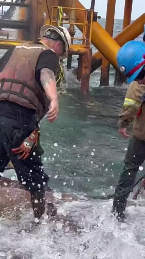 Reply to @coopercurrent755 He’s melting steel at 10,000°F using electricity and oxygen while standing in water. #diver #welder #oilfield #onlyinmycalvins #Totinos425