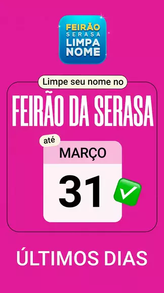🔥 ÚLTIMOS DIAS para limpar seu nome no Feirão Serasa Limpa Nome! Você tem até o dia 31/03 para negociar suas dívidas com +1450 empresas parceiras e aproveitar descontos de até 99%. E TEM MAIS: pagando via Pix, seu nome fica limpo na hora! 💥 Baixe o app da Serasa e aproveite condições imperdíveis. 📲 #dívidas #serasalimpanome #feirãoserasalimpanome #serasa