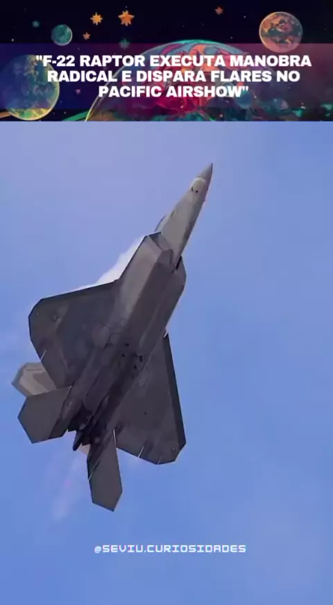 "F-22 Raptor em um Poderoso Loop e Disparando Flares no Pacific Airshow. Uma demonstração impressionante! Siga @seviu.curiosidades para mais ação no ar. 🚀🔥 #F22Raptor #PacificAirshow #ManobrasAéreas #Aeronáutica #sabiadisso