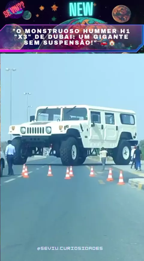 "O gigantesco Hummer H1 "X3" do Sheik Rainbow de Dubai é três vezes maior que um Hummer H1 SUV normal (14 metros de comprimento, 6 metros de largura e 5,8 metros de altura). Apesar de não ter suspensão, ele pode ser completamente dirigido. E internamente, é equipado como uma casa. 🚗🏠 #HummerX3 #CarrosExóticos #Dubai #Luxo #Incrível