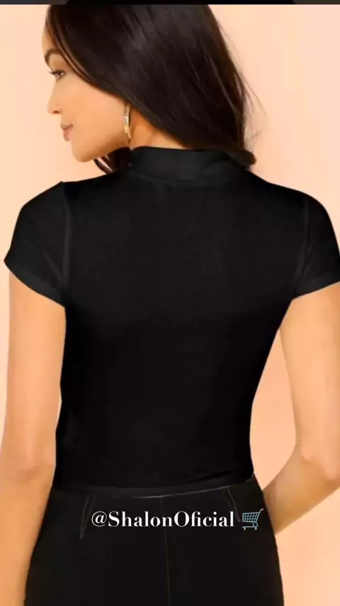 KIT 4 PECAS Blusinha Feminina Manga Curta T-Shirt Gola Alta Canelado
